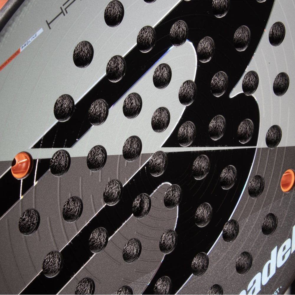 Aggressive roughness to amplify spin on smashes and cut shots.