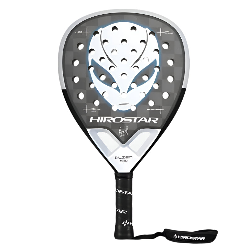 Hirostar Alien Pro Tolito Aguirre 2025 — a balanced, pro-level hirostar alien padel racket with 12K carbon + EVA Black for controlled power, Smart Holes for accuracy, and a sand finish for spin.
