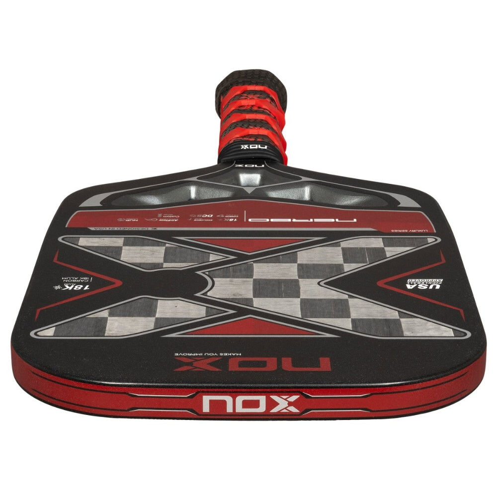 This Nox Luxury Nerbo Pickleball Paddle combines 18K aluminized carbon fiber with the Ultra Power Core, offering an unparalleled hitting experience: comfortable, solid and firm.