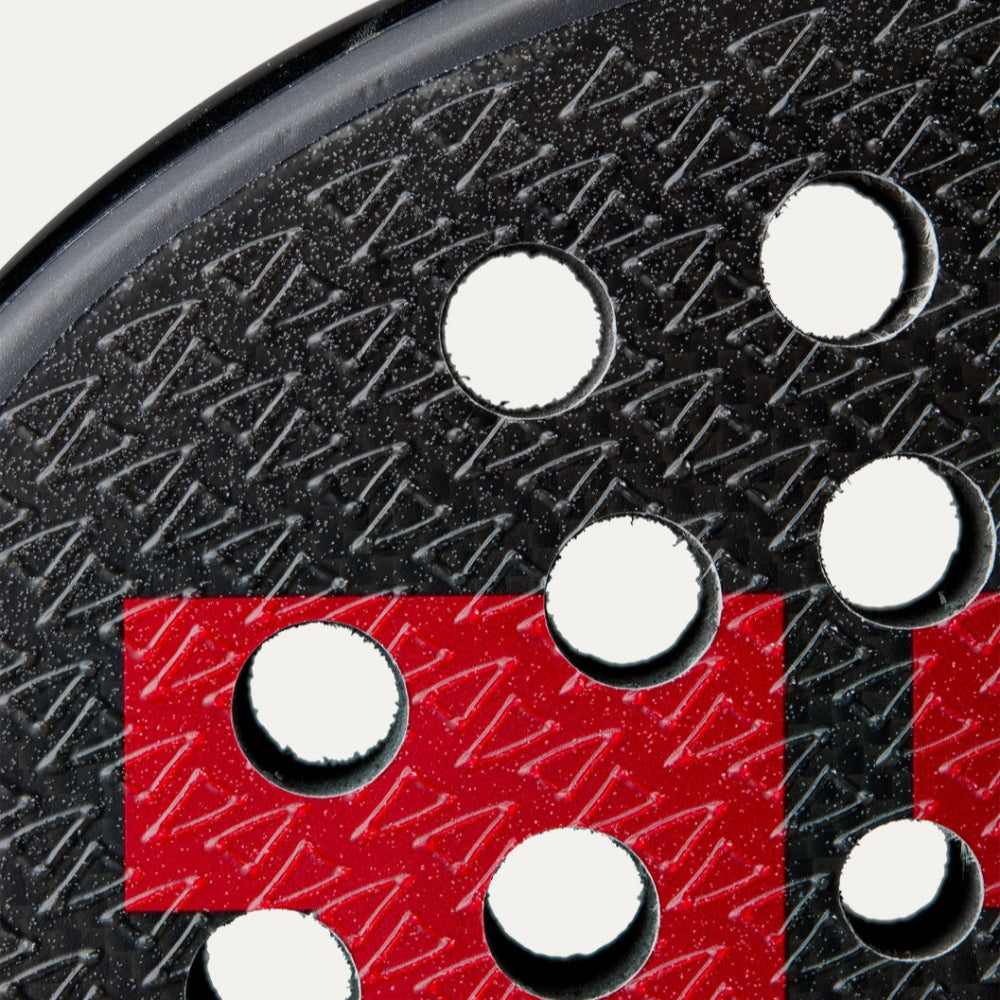 Inspired by Argentinian pro Fernando Belasteguin, his signature Bela V3 padel racket embodies his unrivaled determination to improve his game and motivate all players to tap into their own potential. The V3 provides all the power, precision and comfort that competitive players need to play the game at a high level. The V-Bridge throat and channel enhance stability, maneuverability and the racket’s overall feel. Multi-diameter DuoGrid holes help with power on overhead shots and control on defense and volleys, with an innovative hole-drilling technique that increases bite, even when you don’t make optimal ball contact. The 3K carbon face with signature Spin2 texture generates maximum spin with power on attacking shots.